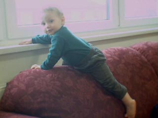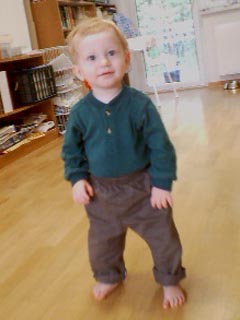 14 Months OldThis past month will go down in family history as the month that Alex finally started walking. Up until now, he would take a step or two, but that was it. Suddenly, one day, he just took off. He's been spotted toddling up to 12 feet at a time, and he's picking up speed. He looks a bit like a penguin because he puts his legs far apart and sways from side to side as he walks. But he definitely prefers it to crawling, and he only crawls now if he needs to go long distances quickly. |