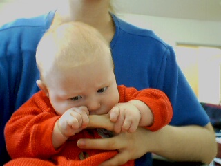 Three and a Half Months OldAlex has had a busy couple of weeks. He's attended two birthday parties and will soon get to see his first fireworks display. He also was babysat for a couple hours for the first time, which was probably harder on his mom than on him (he mostly slept). |