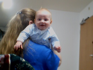 ![]() The ultimate reflective surface -- Alex's little bald forehead. |