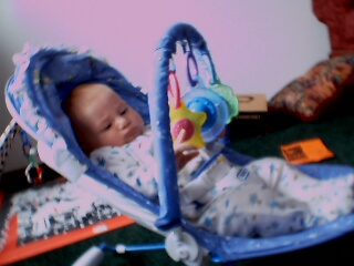 ![]() Alex is getting so big that we can't even fit all his hands and feet into the picture anymore. |